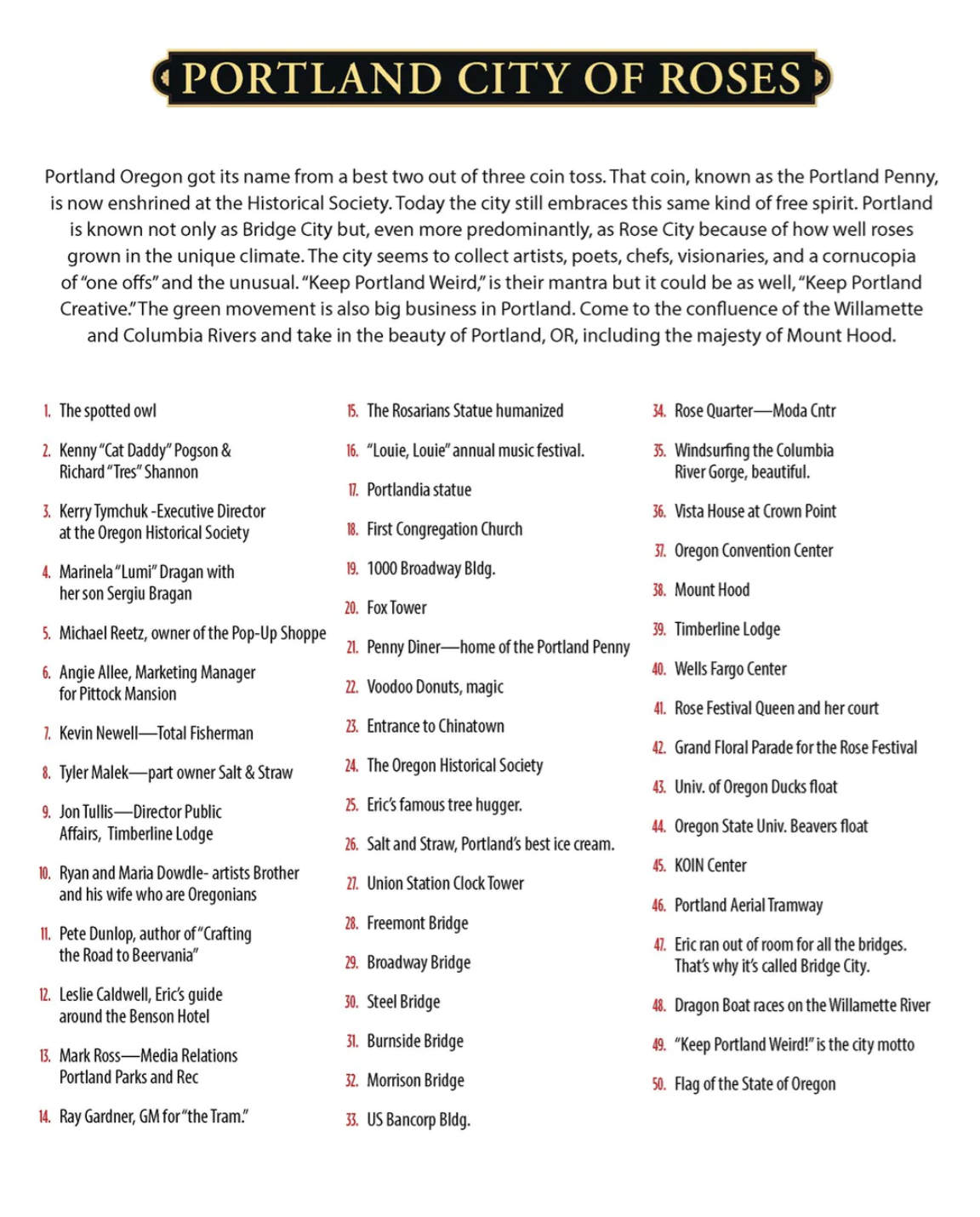 Portland Oregon got its name from a best two out of three-coin toss. That coin, known as the Portland Penny, is now enshrined at the Historical Society. Today the city still embraces this same kind of free spirit. Portland is known not only as Bridge City but, even more predominantly, as Rose City because of how well roses grown in the unique climate. The city seems to collect artists, poets, chefs, visionaries, and a cornucopia of "one offs" and the unusual. "Keep Portland Weird," is their mantra but it could be as well, "Keep Portland Creative." The green movement is also big business in Portland. Come to the confluence of the Willamette and Columbia Rivers and take in the beauty of Portland OR including the majesty of Mount Hood.