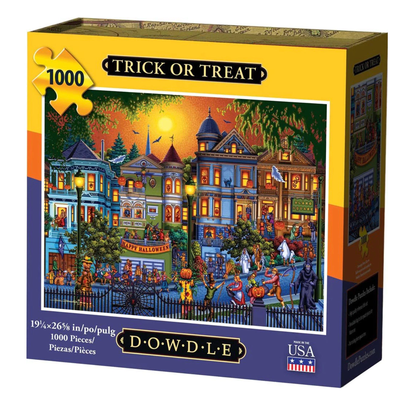And an opening door is the cue to the part Where Halloween revelers shout, 'Trick or Treat!"